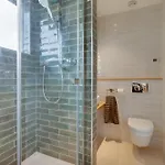 Questo alloggio dispone di un bagno con un bagno con WC separato e una lavatrice. Ci sono anche asciugacapelli e asciugamani.